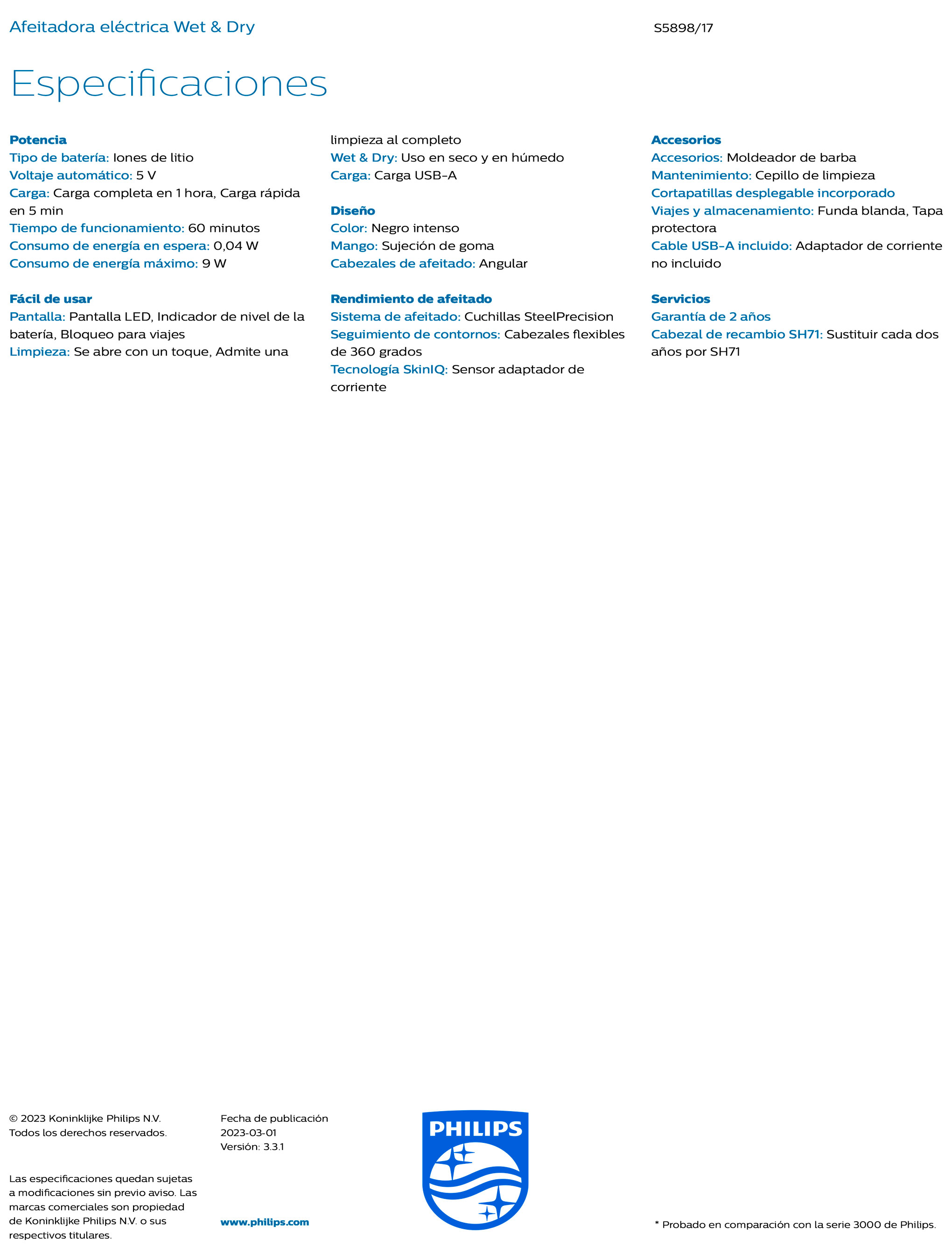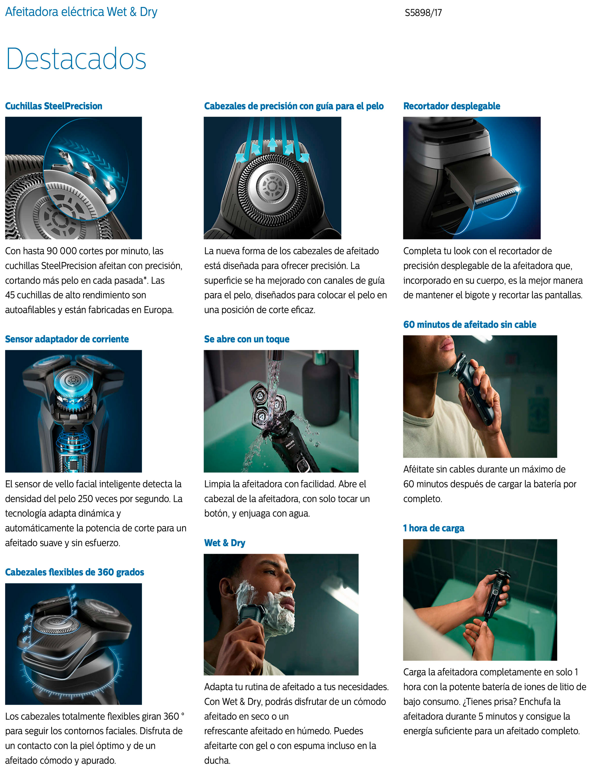 | Descripción de Tecnología | Cuchillas SteelPrecision | Tecnología SkinIQ | Cuchillas SteelPrecision hasta 90.000 cortes por minuto |