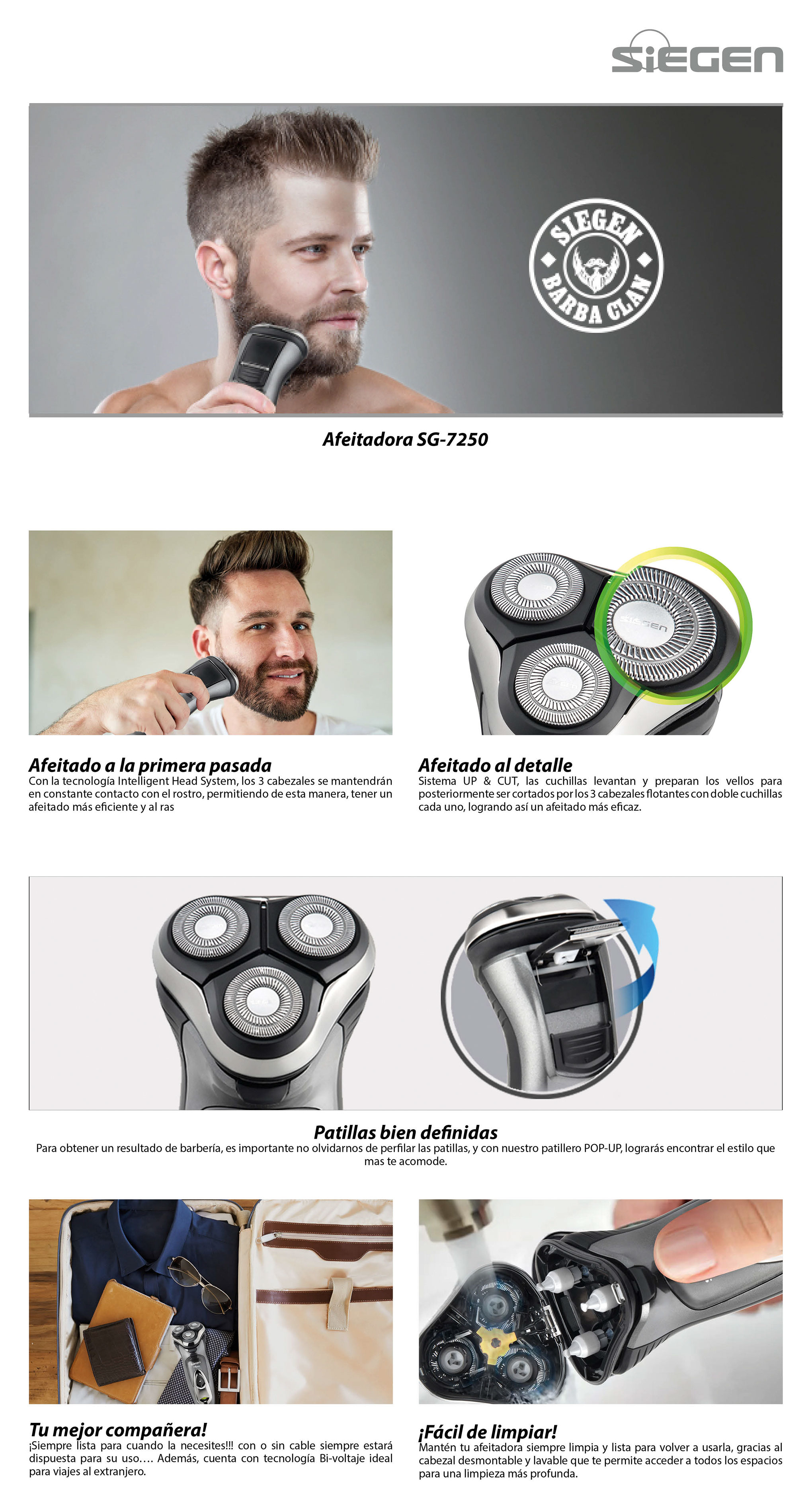El producto es valorado por su buena relación calidad-precio, eficiencia en el afeitado y facilidad de uso. Destaca por su duración de batería y comodidad, siendo adecuado para diferentes tipos de barba. Además, es apreciado como regalo y se presenta tal como se muestra en la imagen, con un diseño moderno y silencioso.