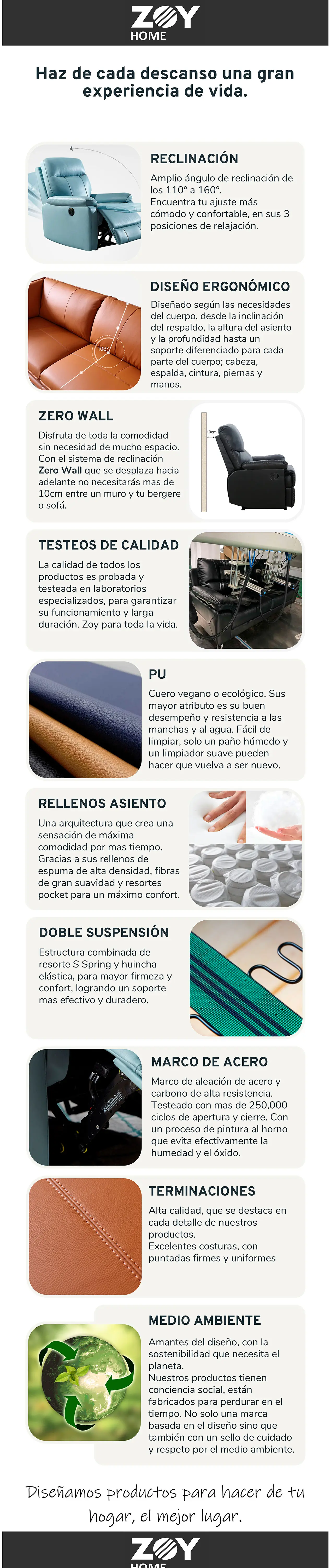 - Resorte pocket en cojines y resorte zigzag en la base del asiento