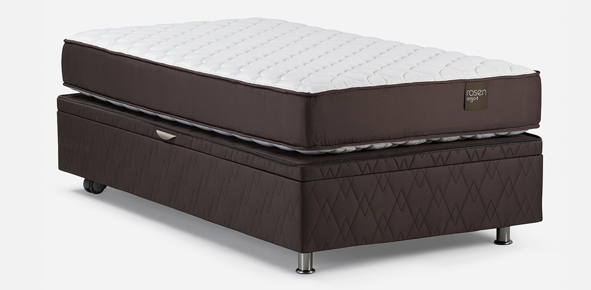 El Boxet Rosen Ergo T es una gran solución para aprovechar el espacio. Es una cama que cuenta con un amplio espacio de almacenamiento al levantar la cubierta superior, para guardar lo que necesites manteniendo el orden de la habitación. El colchón está compuesto por resortes Bonell que entregan una respuesta independiente y permiten la correcta adaptación al tamaño y peso del cuerpo. Además cuenta con un marco de poliuretano que mantiene la estructura y permite mayor ventilación, logrando una regulación óptima de la temperatura. La funda es de tela Jaquard belga, muy durable, resistente y de gran suavidad al tacto. La estructura de este boxet es de madera con tela Jacquard y posee tela antideslizante en la cubierta para evitar deslizamientos, y un sistema mecánico para abrir y cerrar de fácil manipulación.