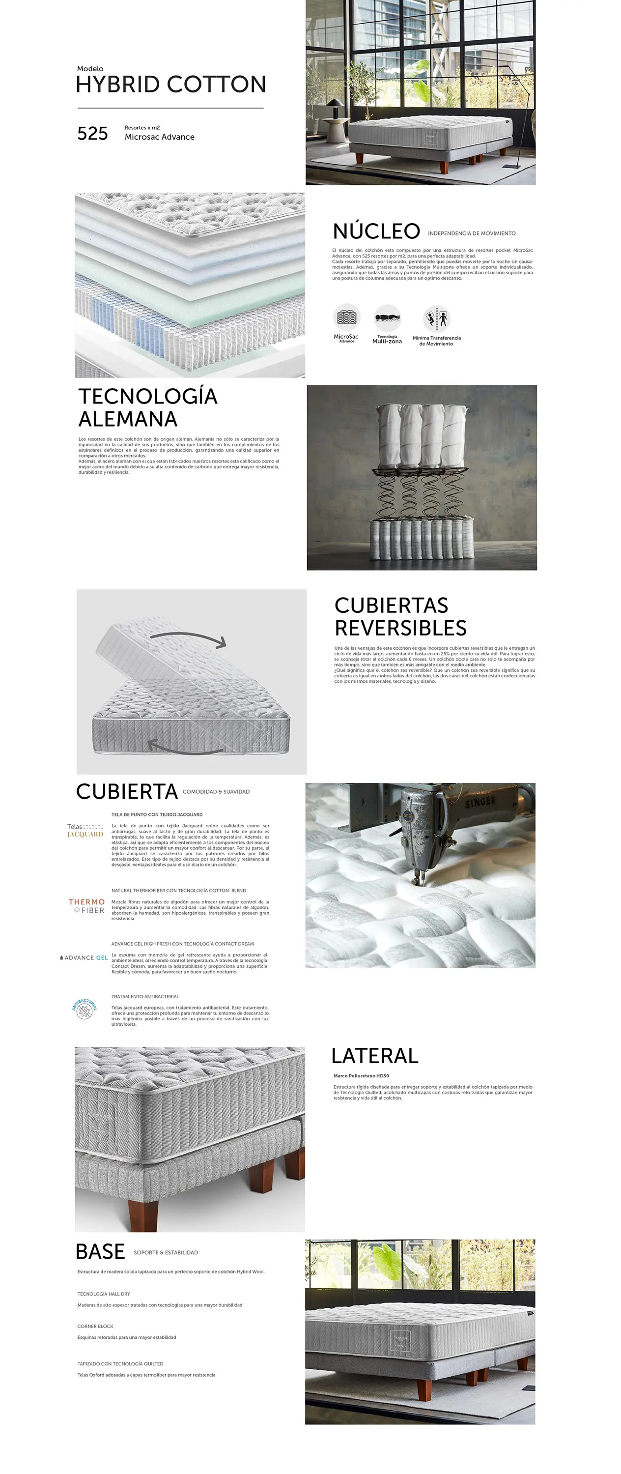 | Relleno Colchón | Resortes pocket multisac micro 525 con marco perimetral de poliuretano hd |