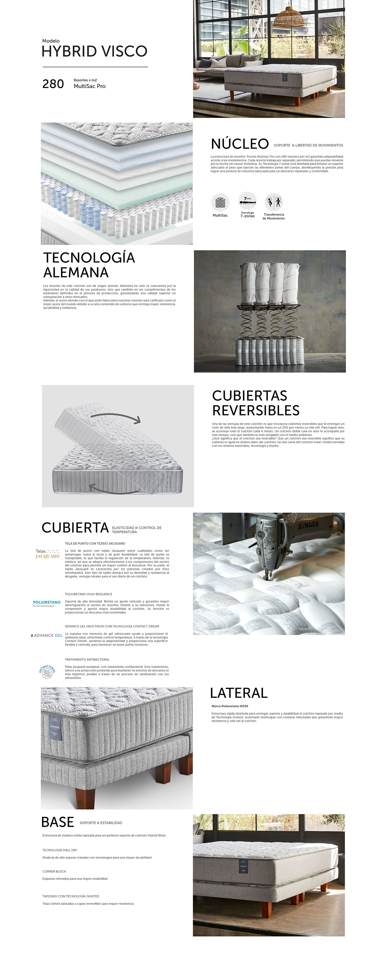 | Relleno Colchón | Resortes pocket multisac 280 con marco perimetral de poliuretano hd |