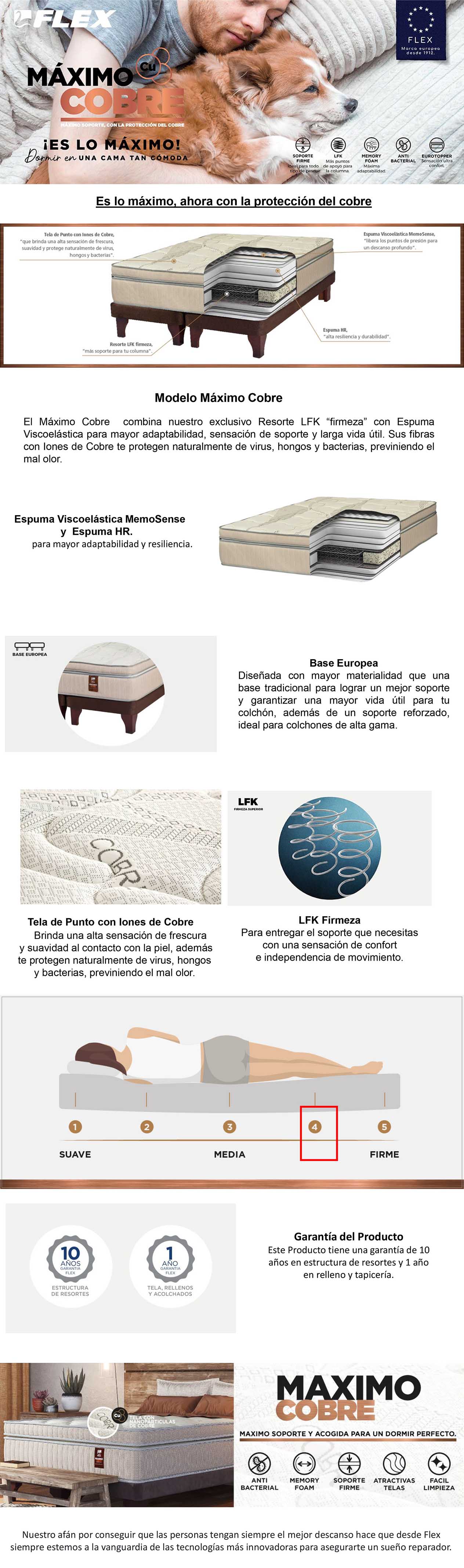 Disfruta nuestro colchón Maximo cobre, ahora con la protección del cobre. Producto innovador con diseño Europeo, con delicadas terminaciones que le dan un alto estandar visual.
