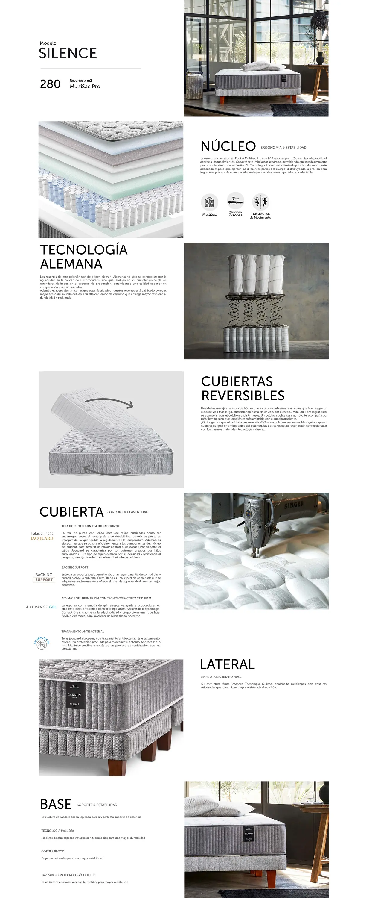 | Relleno Colchón | Resortes pocket multisac 280 con marco perimetral de poliuretano hd |