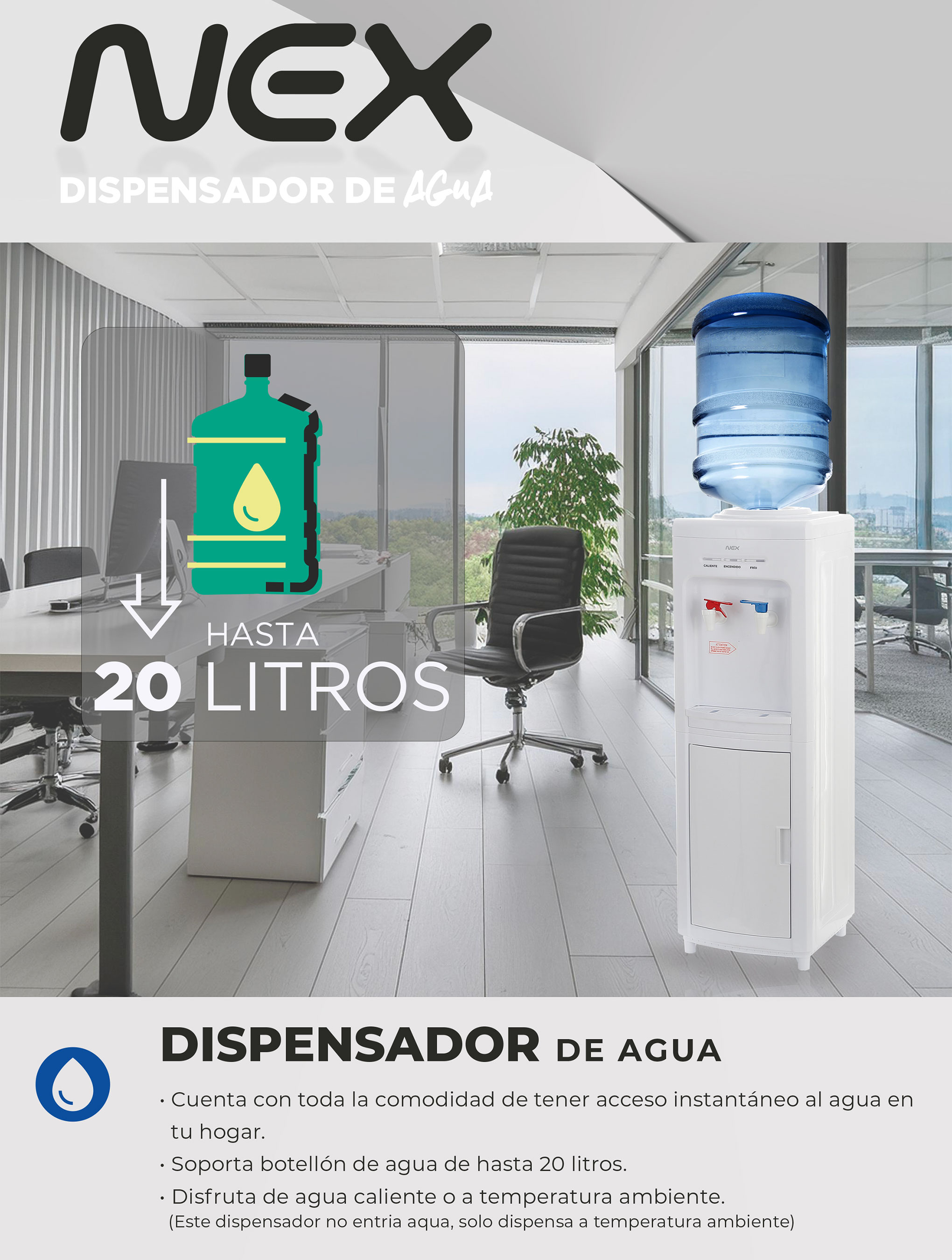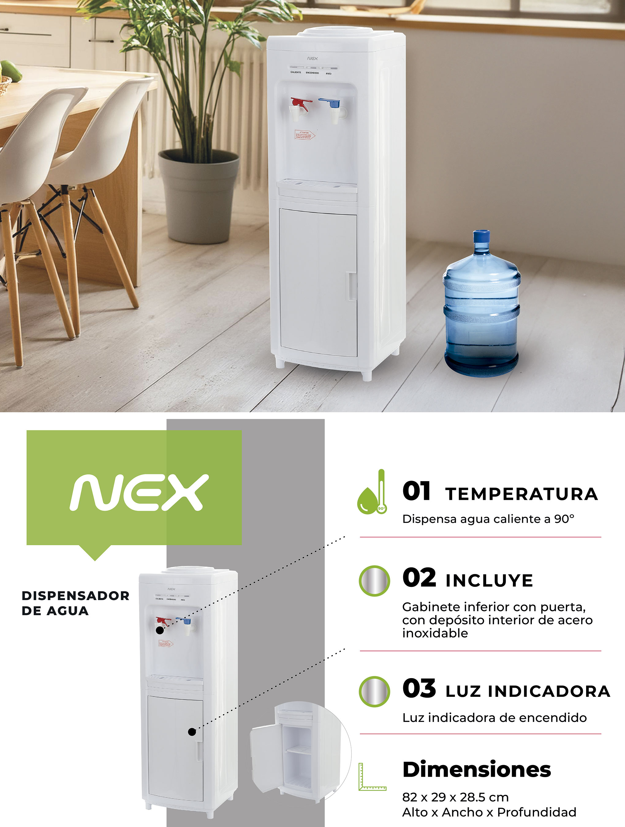 | Más Información | Dispensador de agua de piso|Soporta bidones de hasta 20 litros, dispensa agua caliente a 90°| Depósito interior de acero inoxidable|Control automático de temperatura|Gabinete inferior con puerta |
