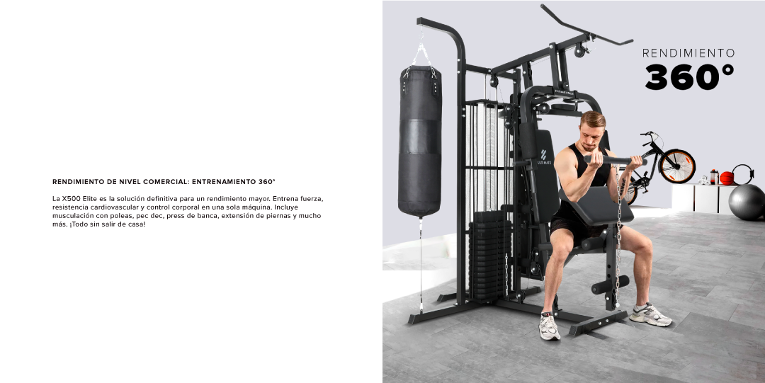 Desde levantamiento de pesas hasta cardio y calistenia, la X500 Elite es la solución definitiva para quienes buscan un rendimiento de nivel comercial sin salir de casa.