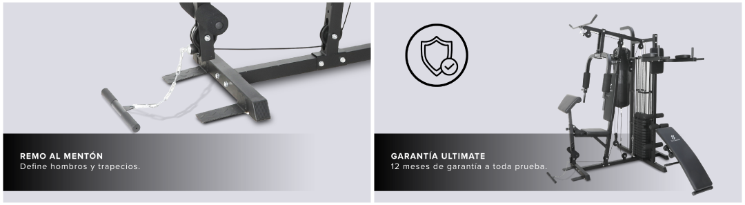 | Incluye | Respaldo y asiento acolchados, Saco de Boxeo, Banco de Abdominales Declinable y Torre para Fondos. |