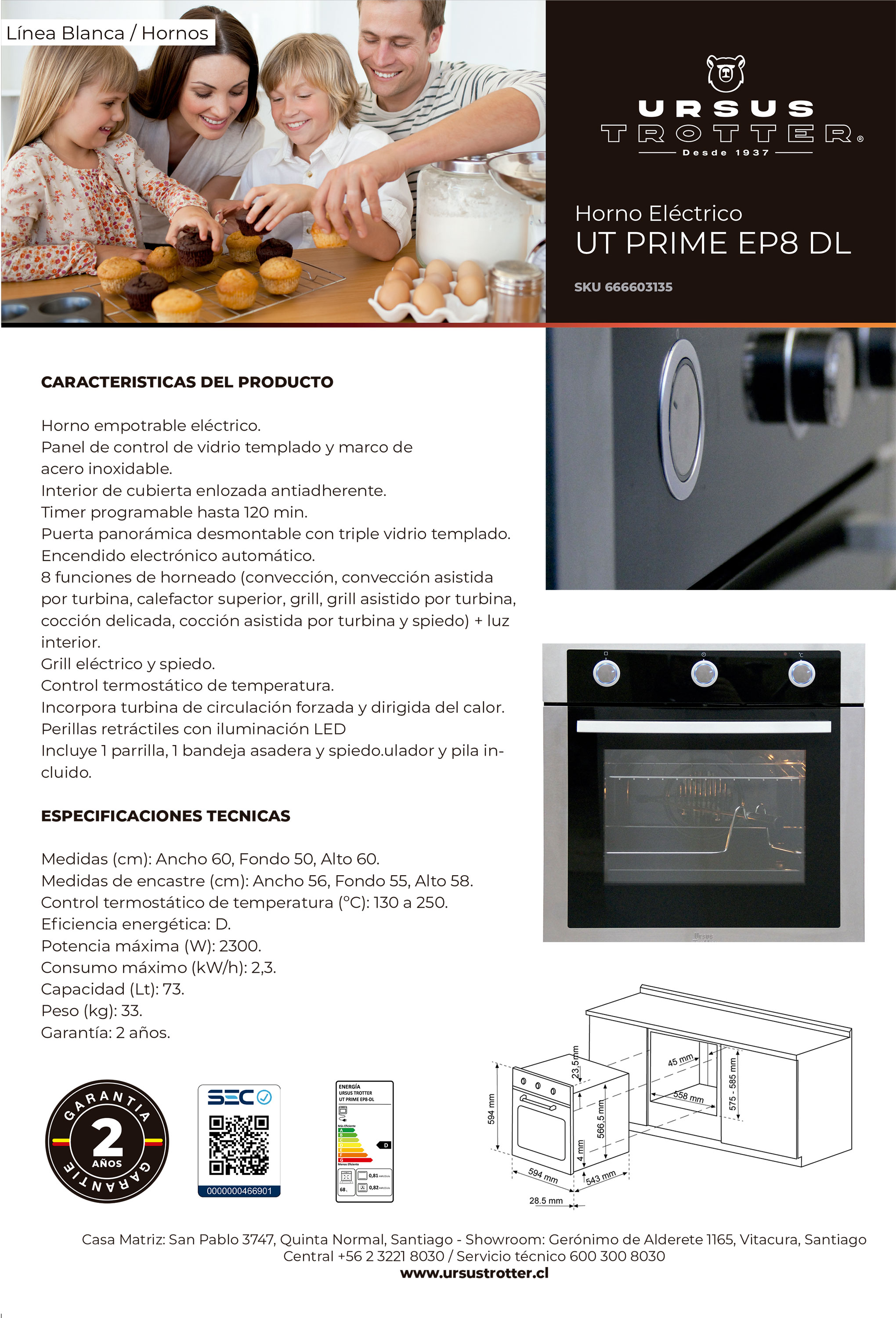 | Modelo | Horno Eléctrico UT Prime EP8 DL |