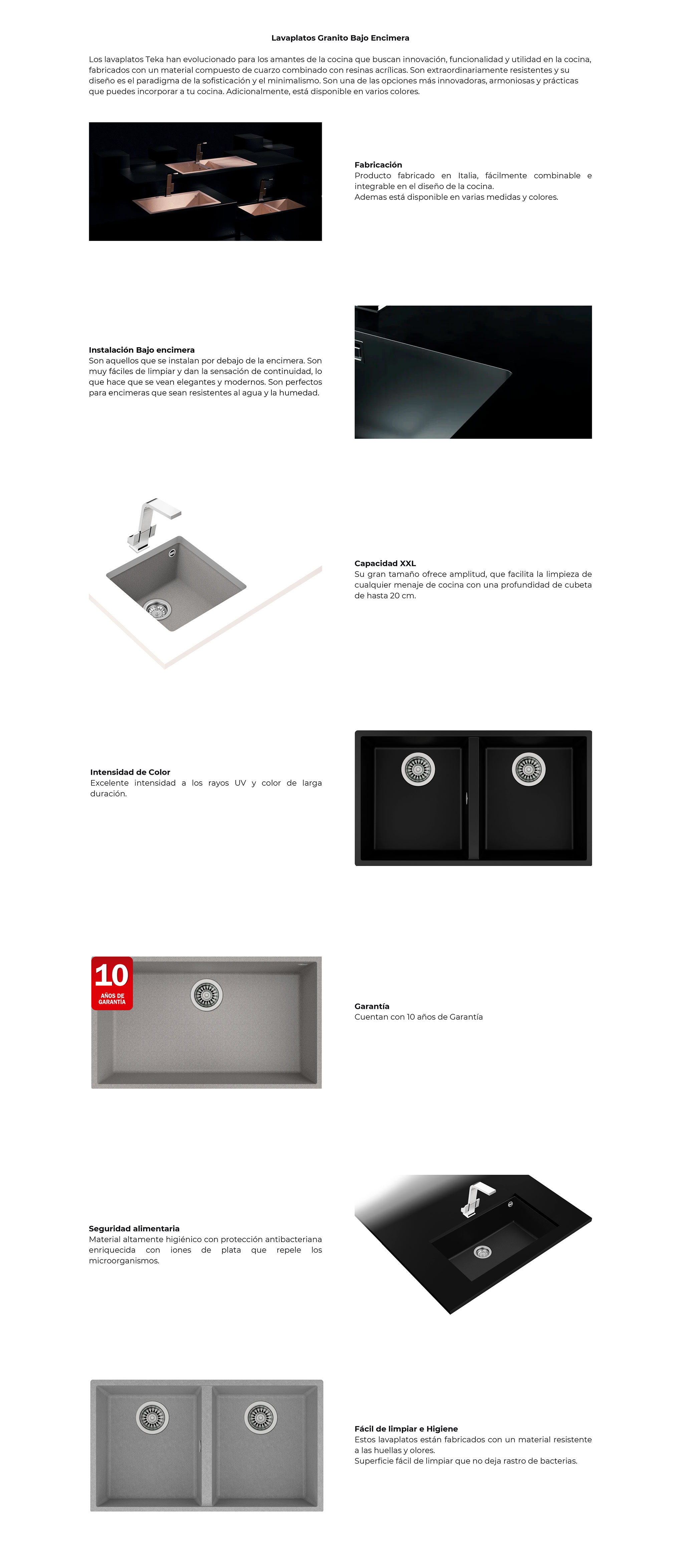 | Más Información | Lavaplatos para Instalación Bajo Encimera | Superficie de alta resitencia a impactos Test método ISO 179 | Resistencia Térmica diferencias de temperatura y alta temperatura. |