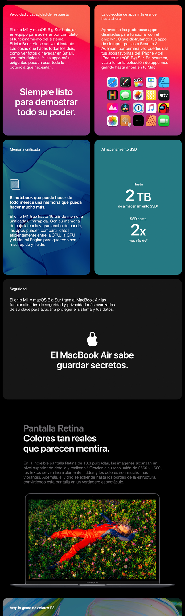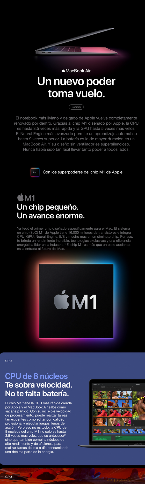 MacBook Air M1 8GB RAM 256GB SSD 13.3" Space Grey MGN63BE/A Teclado Latino