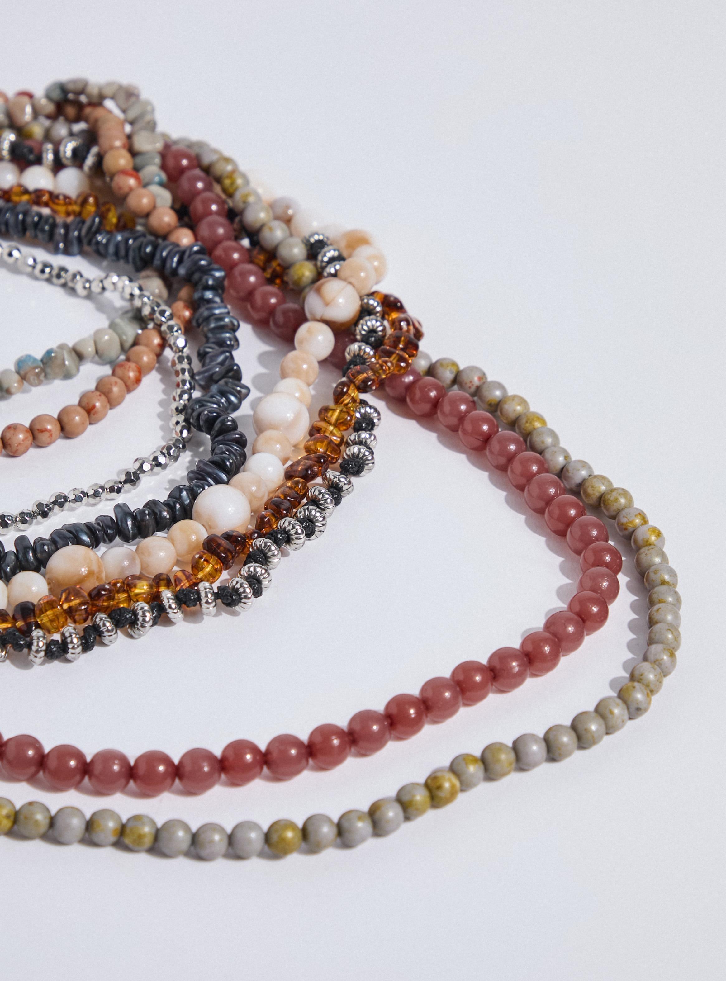 Los collares pueden elaborarse con cuentas acrílicas, piedras sintéticas, metales ligeros y hasta elementos textiles. Esta diversidad de materiales permite jugar con diseños minimalistas o más llamativos, según la ocasión. Incluso puedes elegir opciones muy similares a las cadenas de oro, brindando un toque sofisticado a tu look.