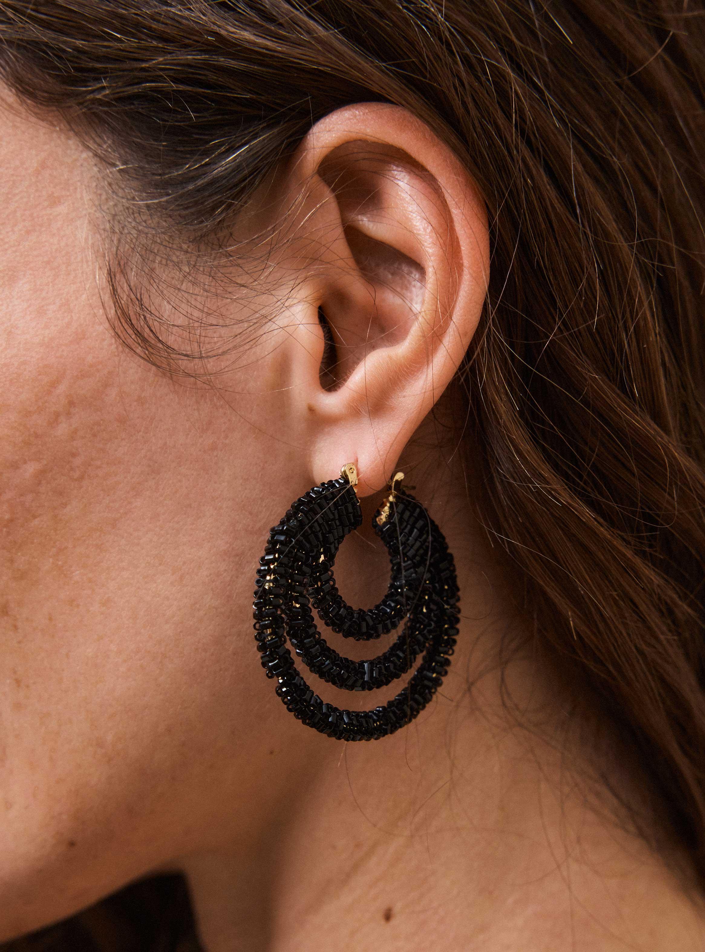 Los aros son una elección atemporal y están diseñados en múltiples tamaños y acabados. Estos pueden fabricarse en metales hipoalergénicos, recubiertos en baños de oro o plata, e incluso en materiales no metálicos para un estilo más bohemio. Además de que son accesorios imprescindibles para realzar el rostro.