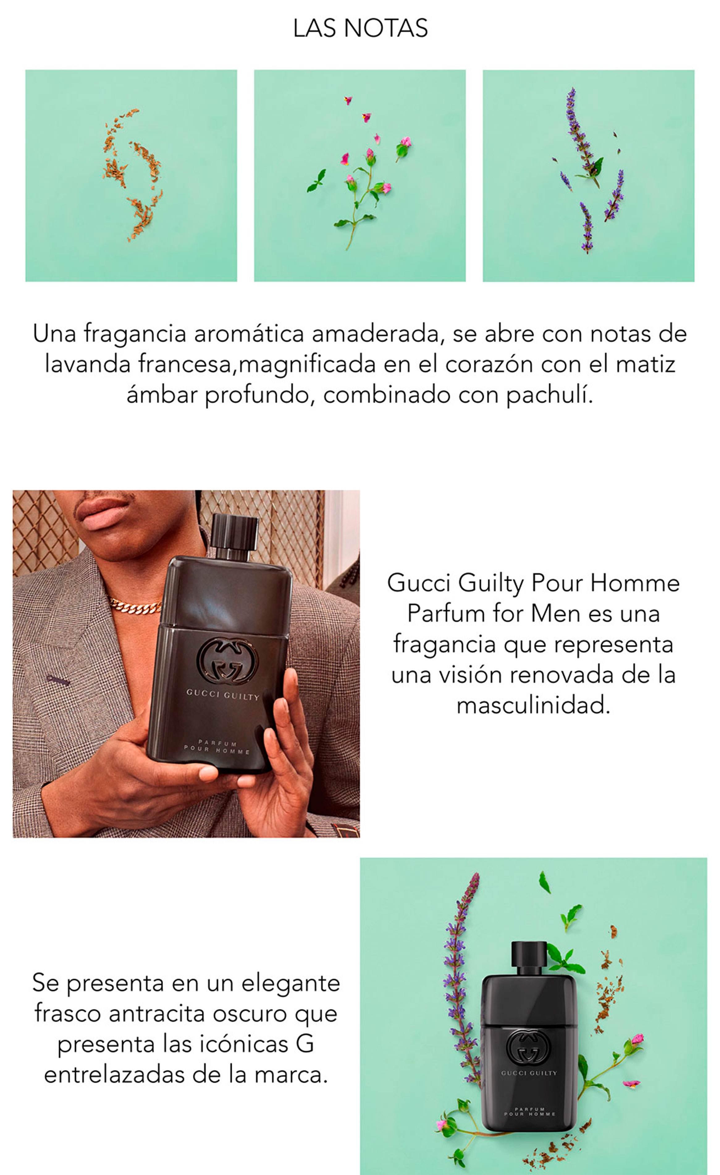 | Notas de Fondo | Pachulí, que encarnan una expresión moderna de sensualidad, misterio e intriga. El secado se intensifica con la riqueza masculina de la madera de cedro |