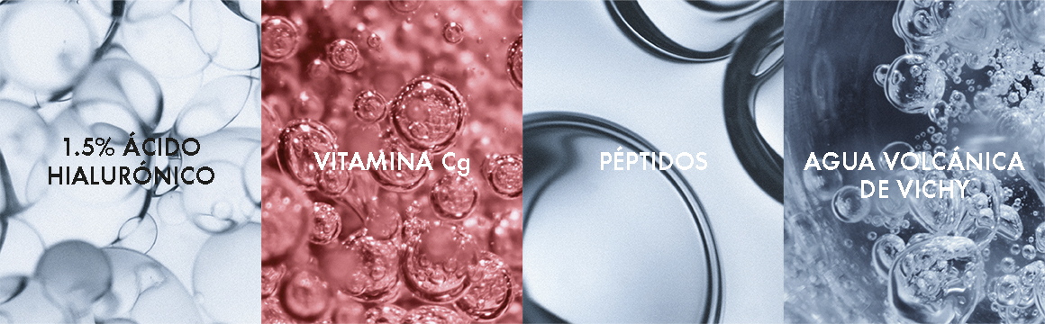 Esta fórmula tiene una alta concentración de ácido hialurónico, para corregir líneas finas y arrugas e hidratar la piel. Con vitamina Cg con propiedades antioxidantes, Péptidos con eficacia antiarrugas y Agua Volcánica de Vichy, que refuerza las defensas naturales de la piel.
