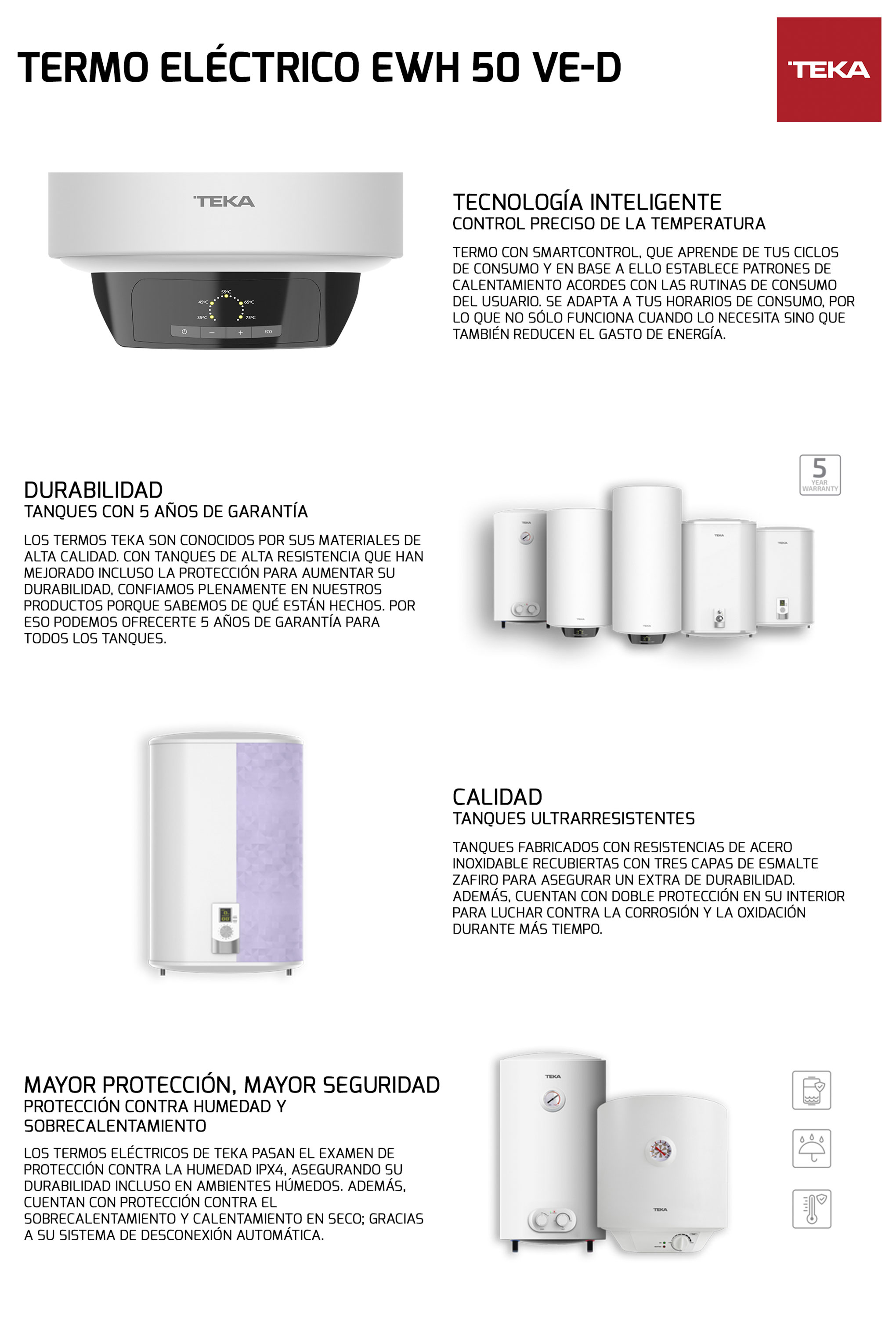 | Más Información | Mejor aislamiento del tanque, grosor de 20 mm, Tanque interior esmaltado de Zafiro, Display LED de temperatura seleccionada, Garantia Tanque 5 Años, Garantía Componenetes 2 Años. |